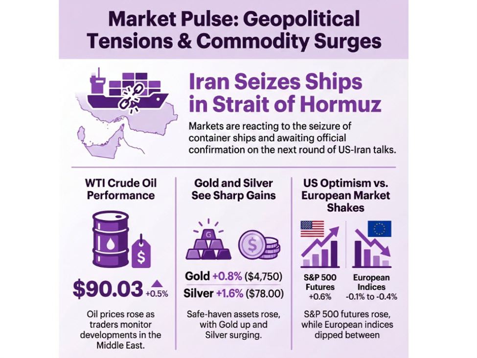 • Gold up 0.8% to $4,750, Silver up 1.6% to $78.00