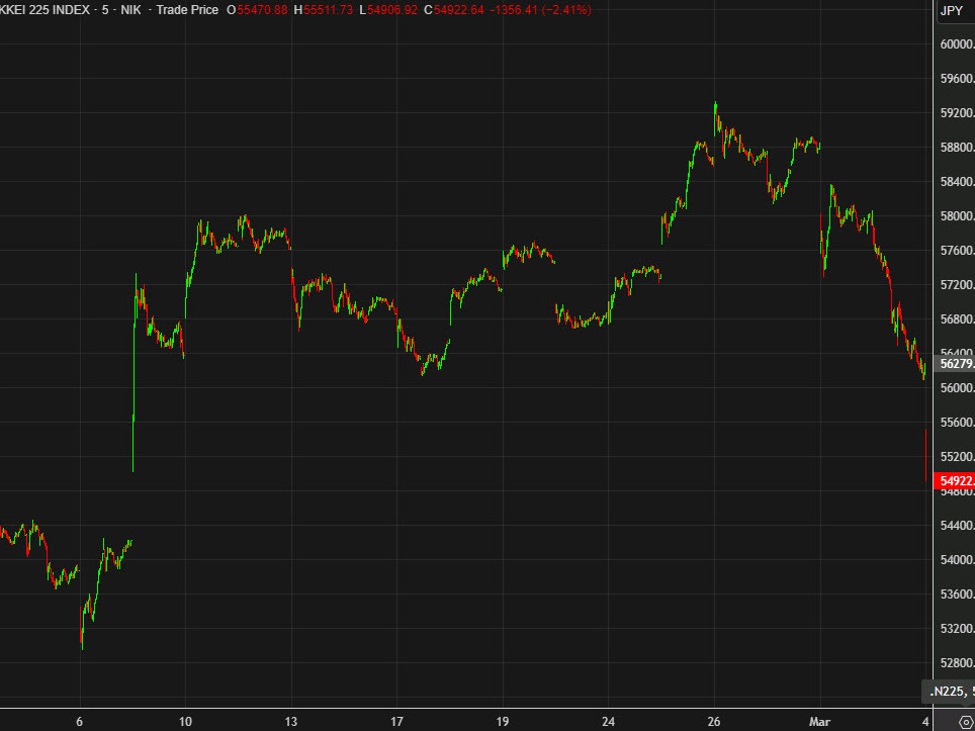 The decline is even worse in South Korea, the place the Kospi is down 6%. Korean shares have had a meme-like run within the final yr and significantly early this yr, rising +40% YTD earlier than the struggle. That comes after years of extremely-depressed multiples that have been shaken unfastened partly due to the rally in reminiscence chip shares.