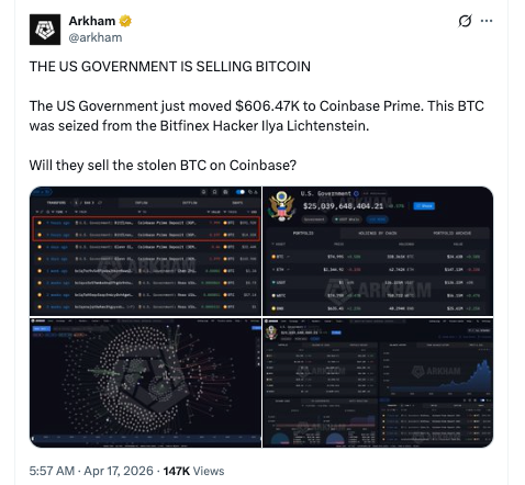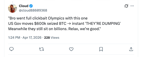 Whereas Arkham didn’t precisely say that the US authorities was dumping its multi-billion-dollar stash, Twitterati had been fast to criticize Arkham’s alternative of phrases, which is probably not the case.